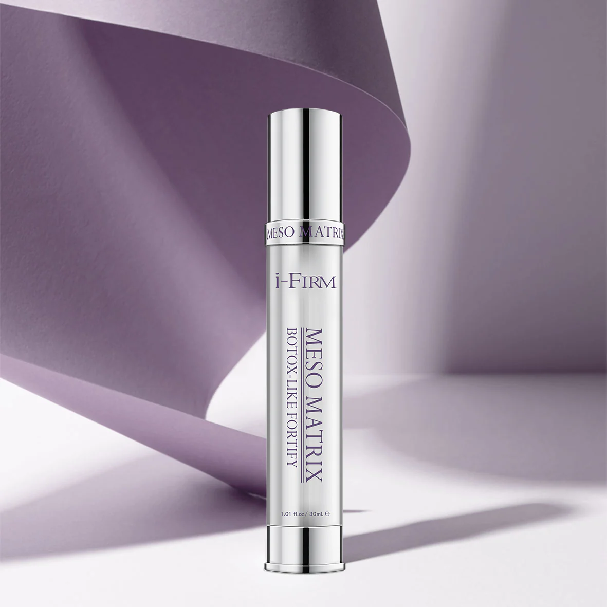 "臨床級醫學美容治療性MESO BOTOX-LIKE抗皺配方,富含6種專利活性因子,能強化抗皺淡紋效果,幫助防止膠原及彈力蛋白流失,有效幫助放鬆面部肌肉,改善肌肉繃緊而形成之動態紋,尤以修復額頭、眼周及唇部之皺紋更為顯著;其滋養修護成分,更能有效發揮補濕鎖水、平衡油脂分泌之特性,高效修護並重組肌膚彈性及緊實度,同時強化皮膚保護力,改善乾燥、過敏及老化膚質。 * 強效抗皺,減淡皺紋深度並平滑膚質